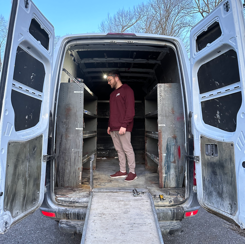 If you aren't sure what a Sprinter van is, think of the Amazon delivery vans. There are several makes and models: there is the Ford Transit, the Dodge Ram ProMaster, and the Mercedes Sprinter. Within those, you can also get the high roof models (that you can stand up straight in) and there are different lengths. We have a 2013 Mercedes Sprinter 2500 high roof.